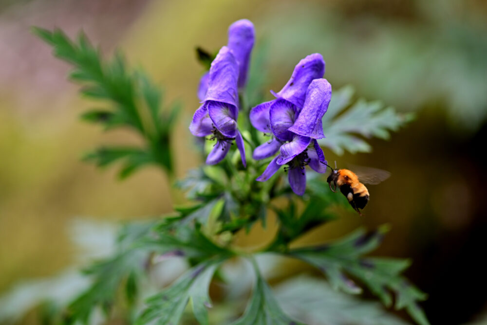 なんとも妖しく不思議な紫の花々よ。三脚を置きシャッターを切る。調べるに、猛毒「アルカロイド」の持ち主。わずか1グラムでも高い毒性がある。解毒薬はない。耳元でブンブンうなる蜂の羽音。花々を巡回し、長い舌を使い花の奥の蜜を集め、受粉を手伝う「トラマルハナバチ」達。彼らの性格はとても温厚で、何もしなければ、刺すことはないと聞いていた。トラマルハナバチ自体が絶滅危惧種に指定されている地域もある。
